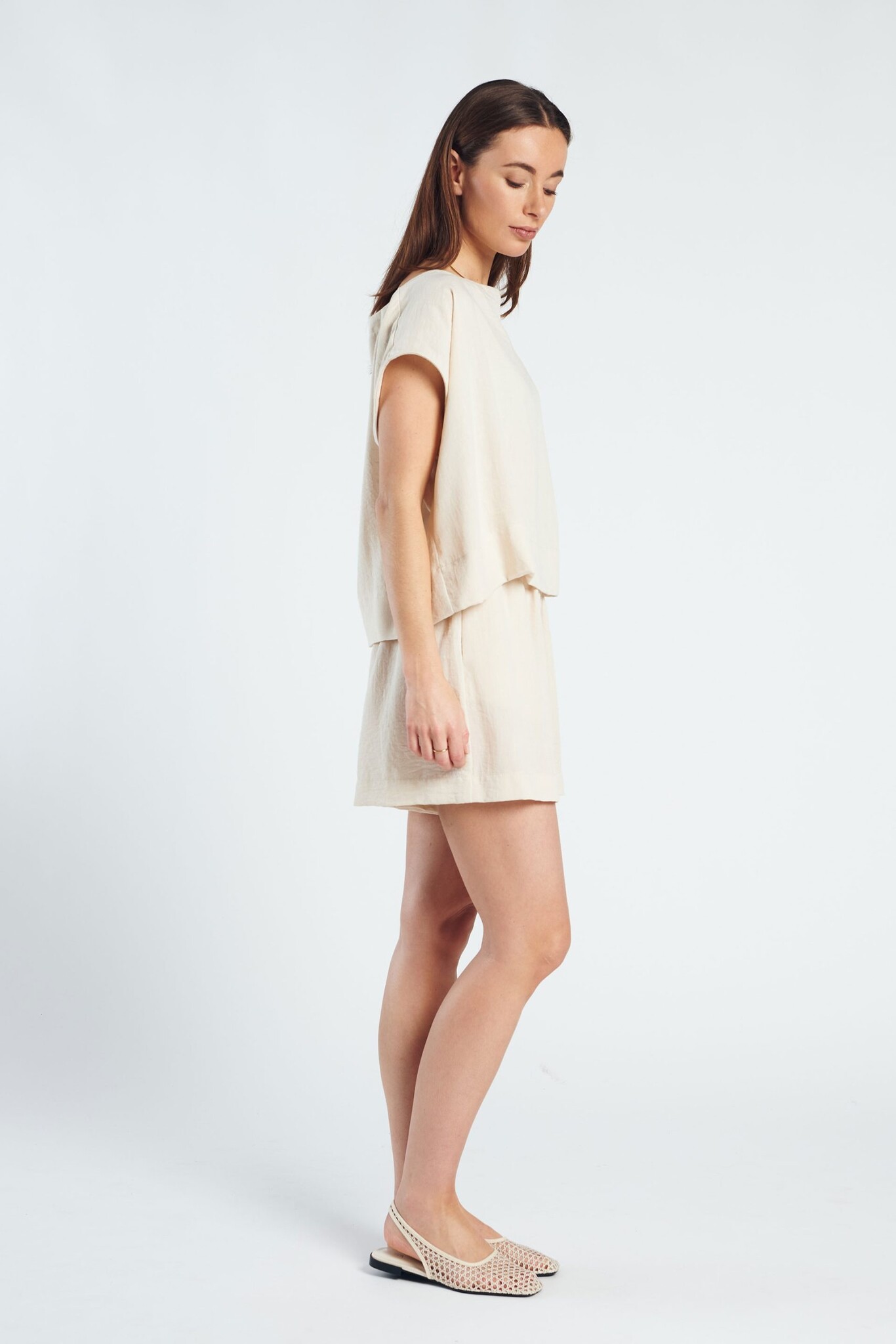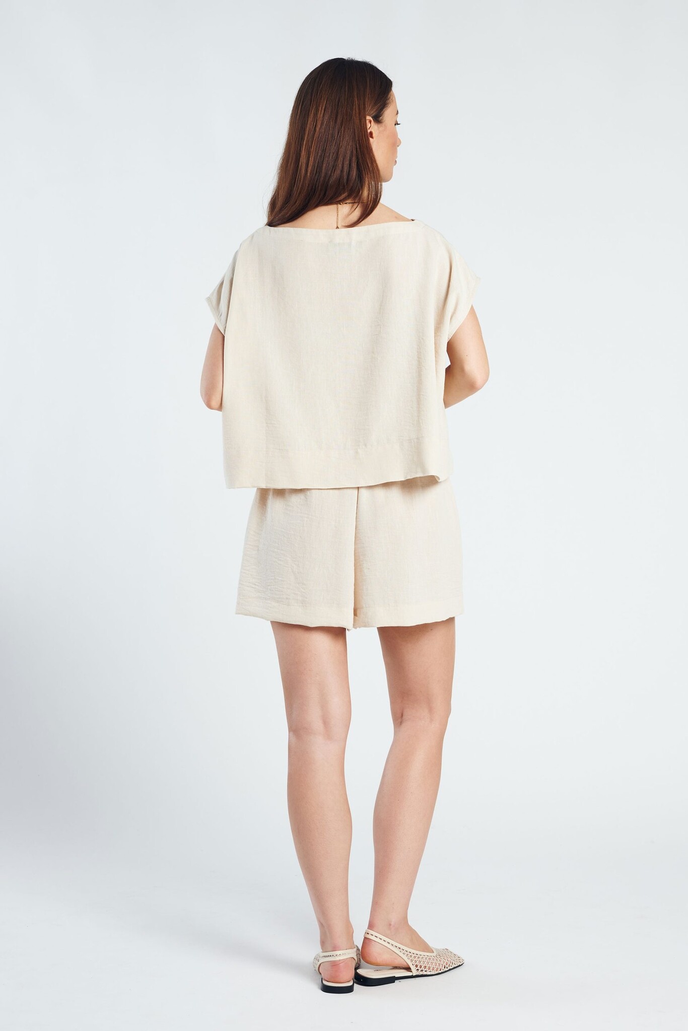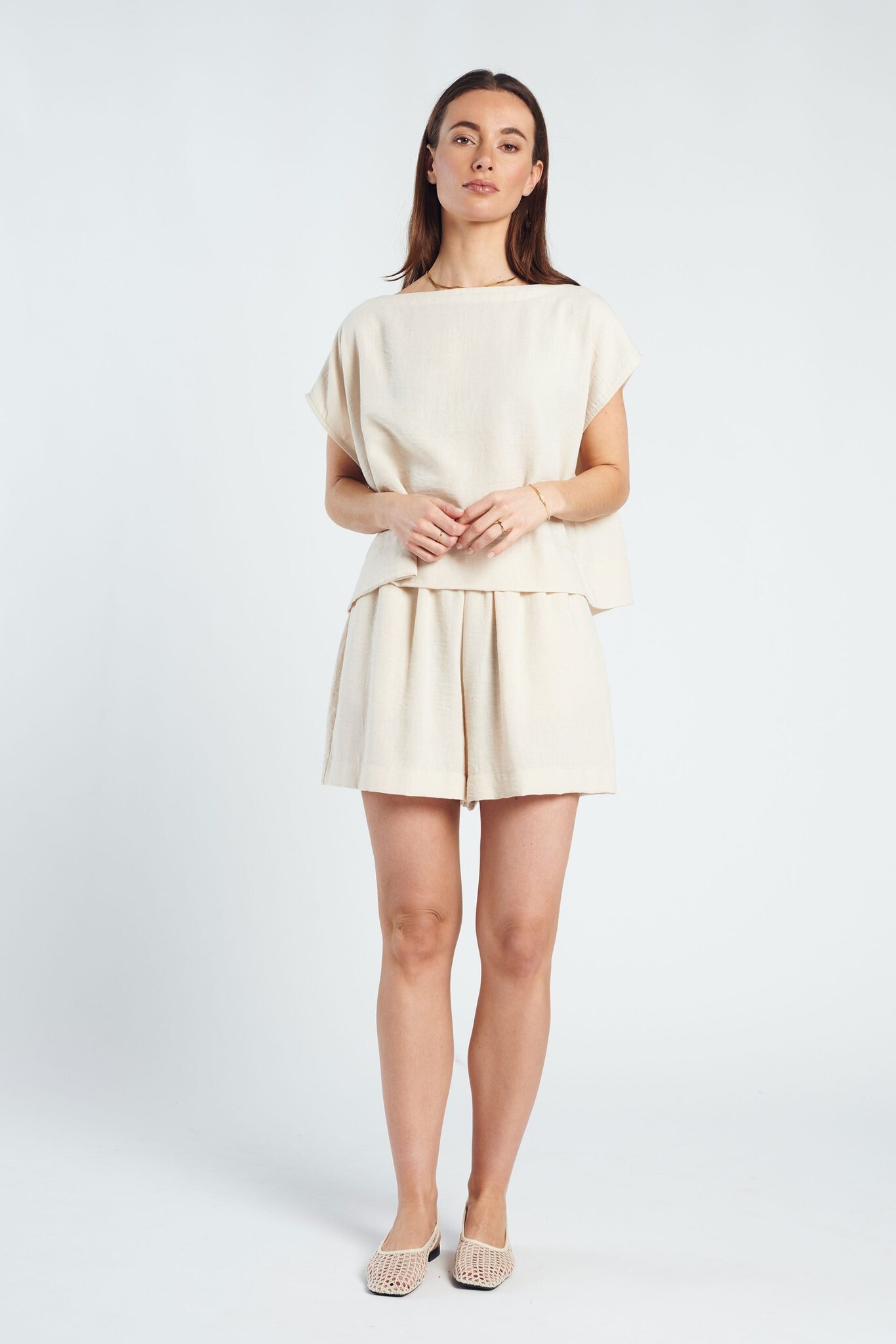 De Chloe Short is een luchtige essential met een minimalistische, verfijnde uitstraling. De zachte beige tint geeft de short een tijdloze en rustige look. Gemaakt van een lichte, soepelvallende kwaliteit die comfortabel draagt en ideaal is voor warmere dagen. De relaxte pasvorm en subtiele plooidetails zorgen voor een elegante, nonchalante fit.