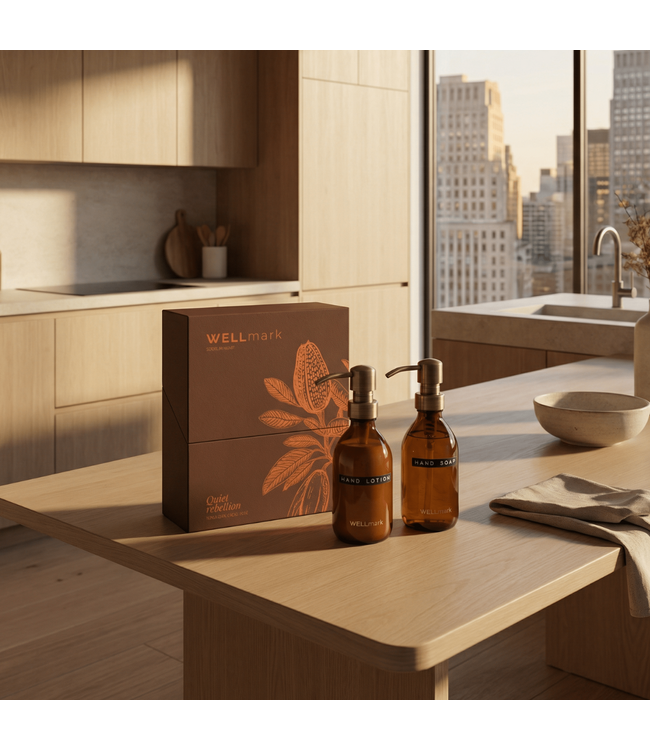 De stijlvolle glazen flessen van 250ml maken deze Luxe Hand Care Set Quiet Rebellion tot een elegant geheel aan de wastafel of in de keuken. Perfect als luxe toevoeging aan je interieur of als doordacht cadeau voor iemand die houdt van kwaliteit en bewust design.