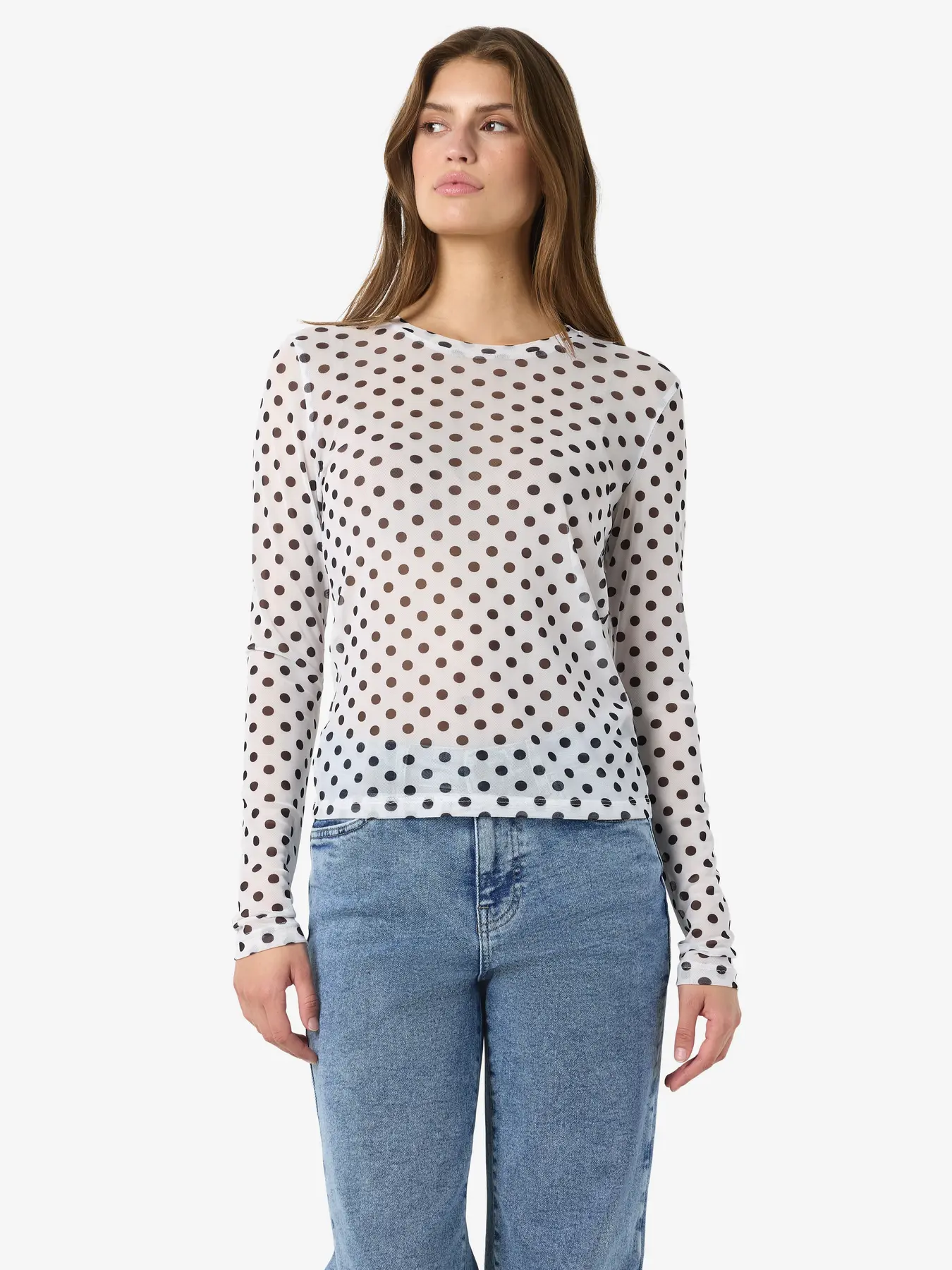 mesh top kleine polkadot wit