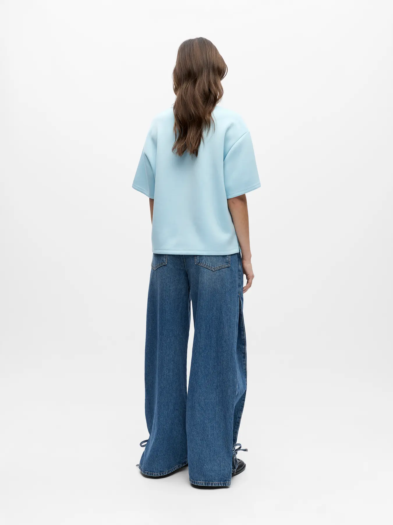 wide jeans met strikceintuur beige
