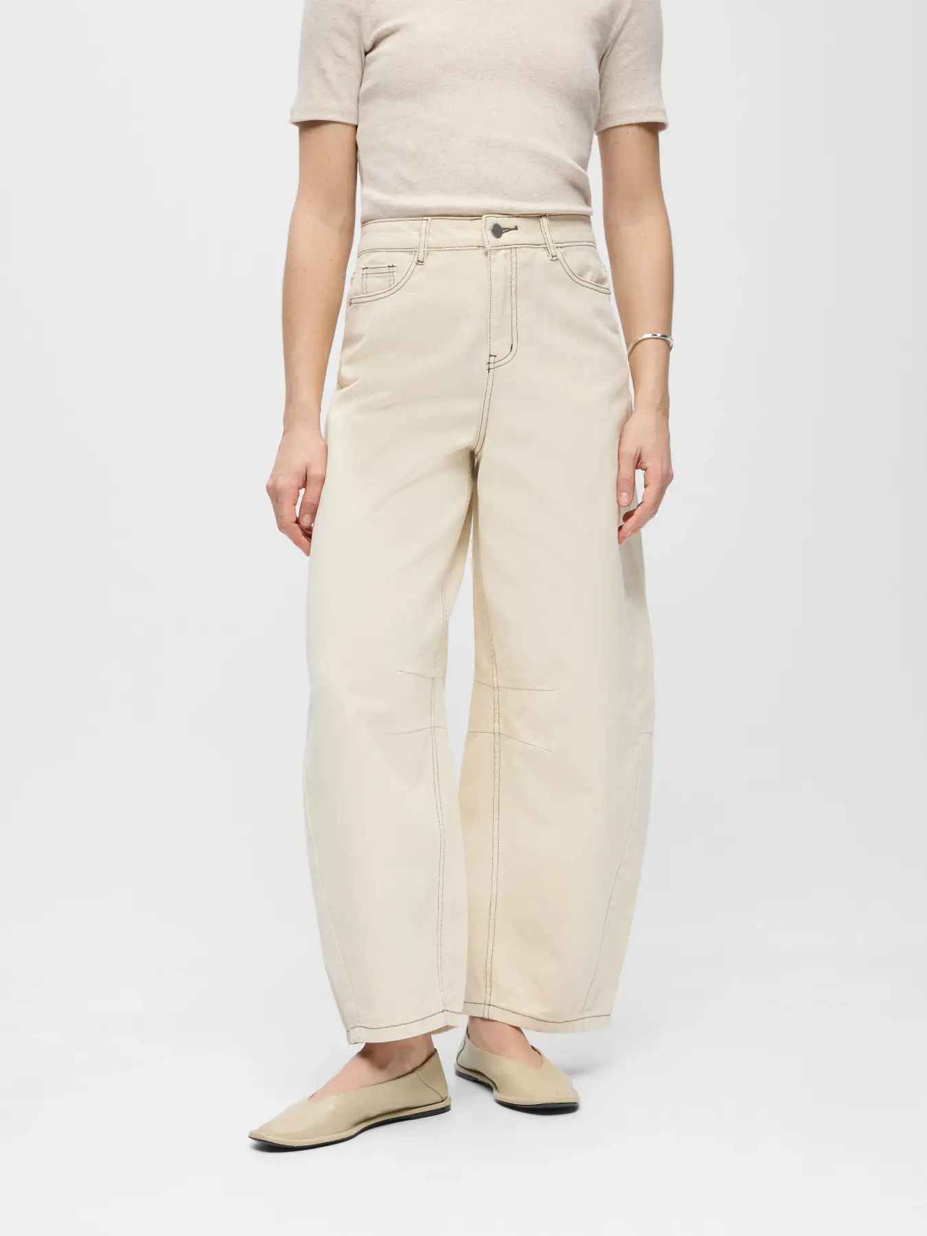 barrel jeans met contrast naden