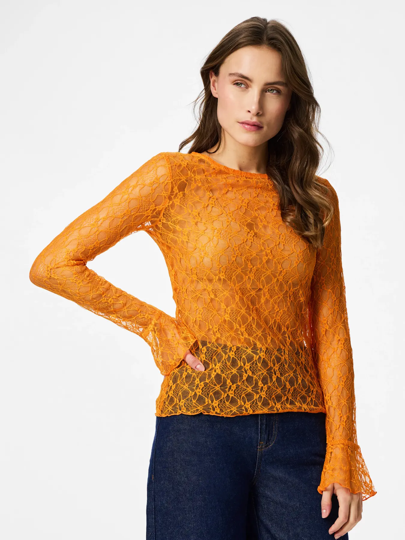 PIECES kanten top burned orange