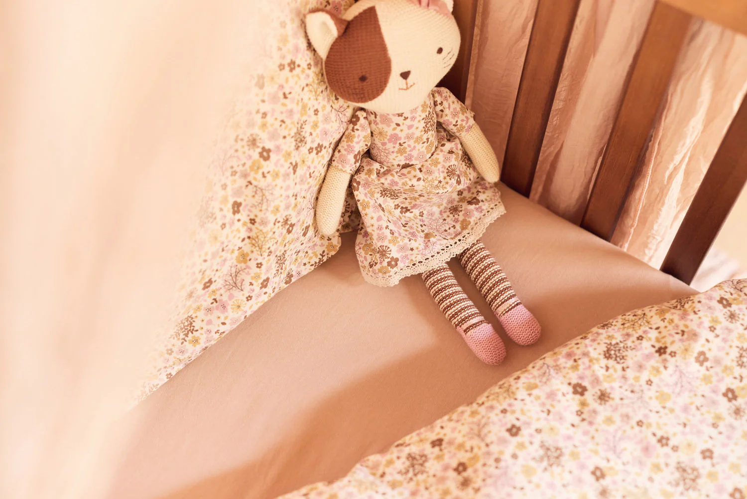 Deze schattige knuffel is helemaal klaar voor knuffels en avontuur! Het zachte gebreide lijfje maakt deze knuffel heerlijk om mee te knuffelen, terwijl de vrolijke uitstraling altijd een glimlach op het gezicht van je kleintje tovert. De knuffel zit stevig rechtop, zodat die ook een leuke decoratie is voor de babykamer. De perfecte knuffelvriend voor je kleintje!