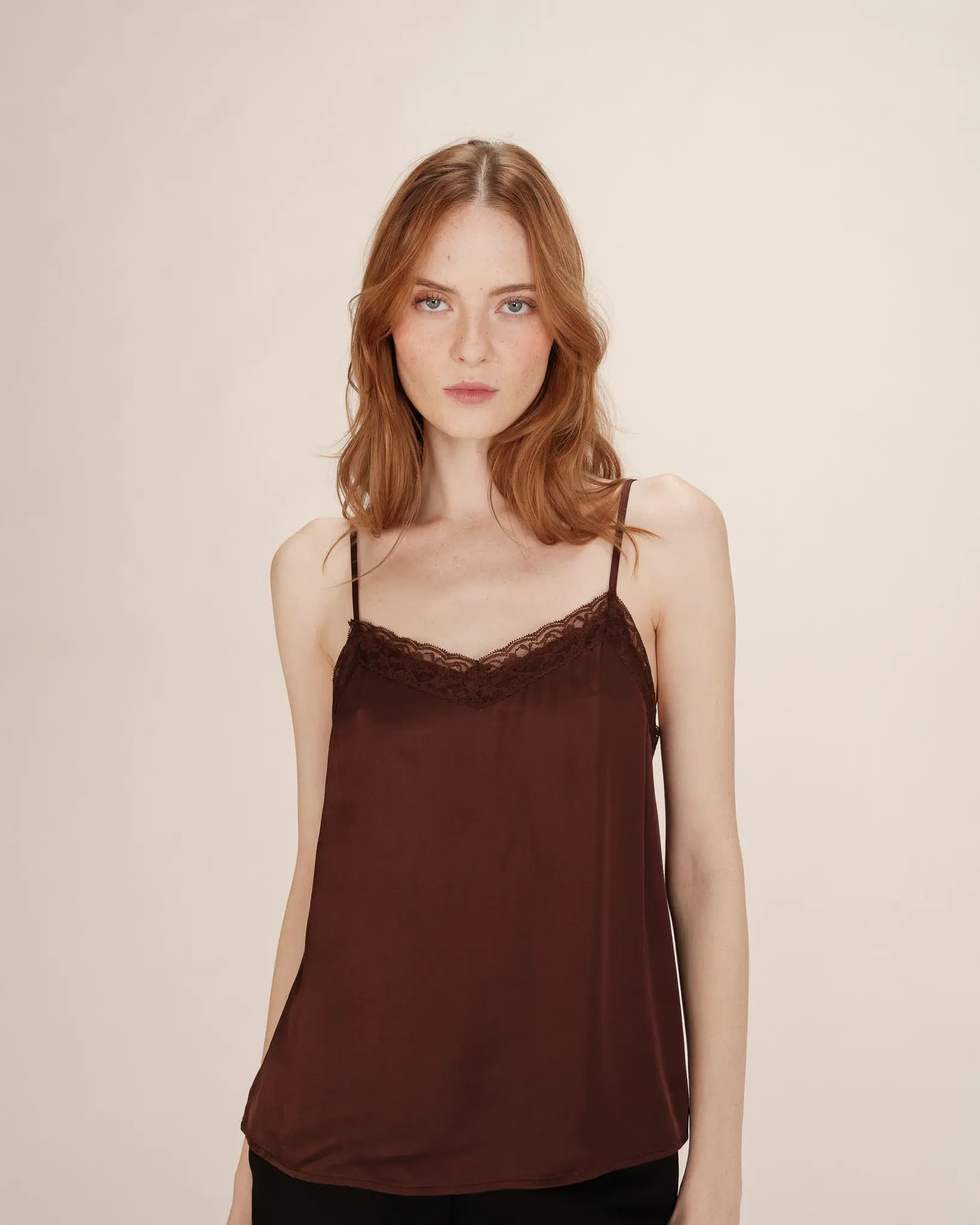 top met kant chocoladebruin